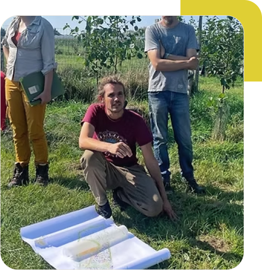 Elke lesdag beginnen we met een sterk theoretisch kader waarin we de verschillende ontwerpstappen van een voedselbos uitleggen. We laten ons inspireren door permacultuur, syntropische landbouw en agro-ecologie om een ​​breed en toepasbaar raamwerk voor voedselbossen te creëren.