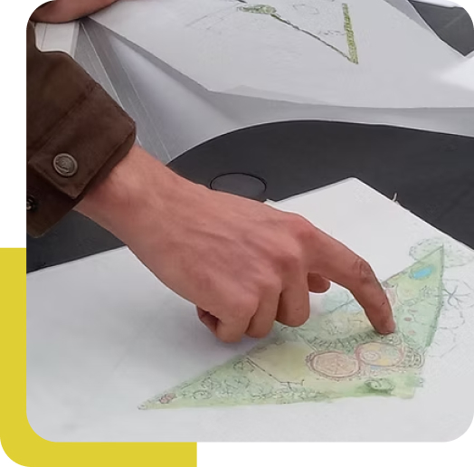 - Dag 1: Uitleg van het ontwerpproces, de workflow, de basiskaart, observatie van het terrein en de bodem.