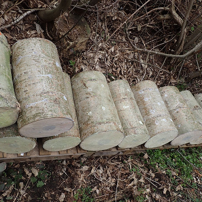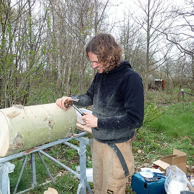 Paddenstoelen zijn de vrucht van de schimmels die ik met veel geboor en gehamer in de populierenstammen aanbreng. Afgezegeld met een fijn laagje raapzaadwas.
